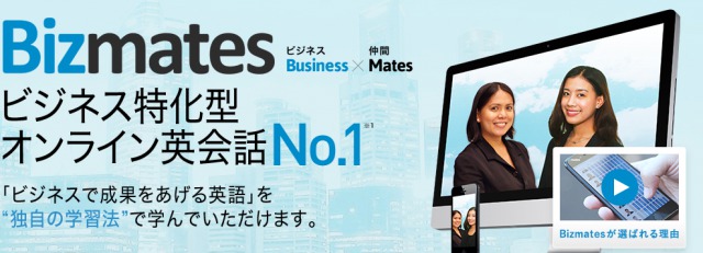 ビジネス英会話はもちろん、メール添削からプレゼンの予行練習まで、ビジネス英語を幅広くサポートしてくれるビズメイツ。グローバルに活躍したいビジネスパーソンにおすすめのオンライン英会話です!