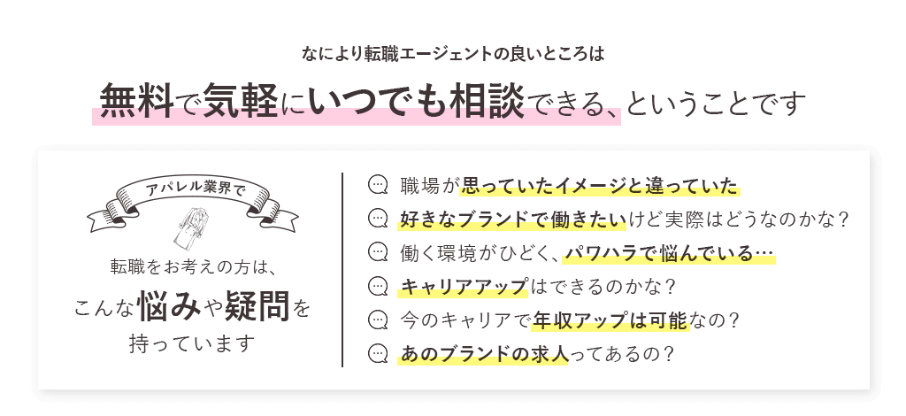 アパレル・ファッション業界の特徴は若年層が多く働いているということで、また、アパレル・ファッション業界へ転職を希望する方のなかには業界未経験の方も多いです。