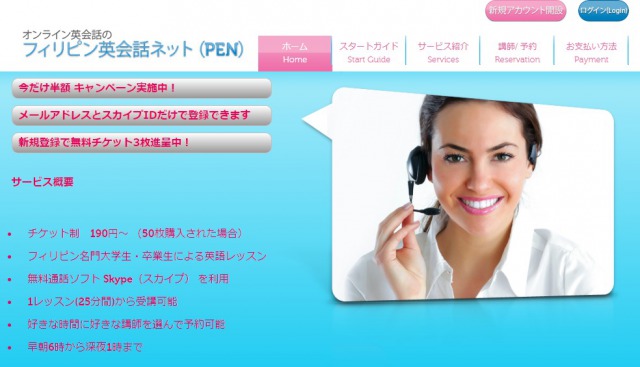フィリピン英会話ネット(PEN)の無料体験は3回