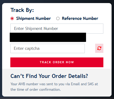 ページの右側にUoPeopleから届いたトラッキング番号をいれてCapchaのセキュリティチェック黒塗りのところに表示される文字を入れる
